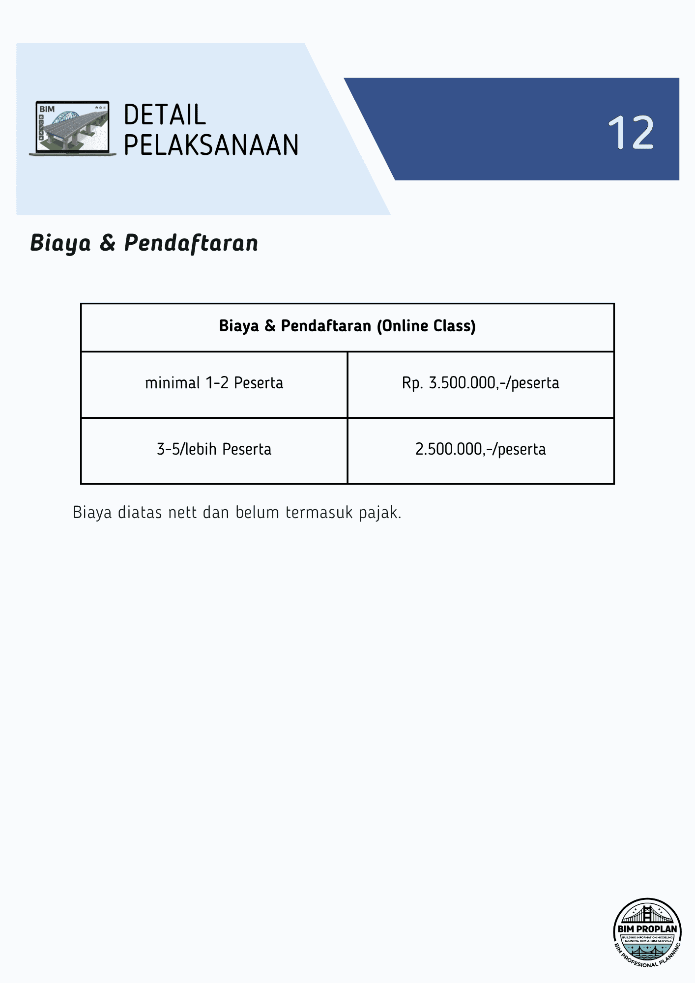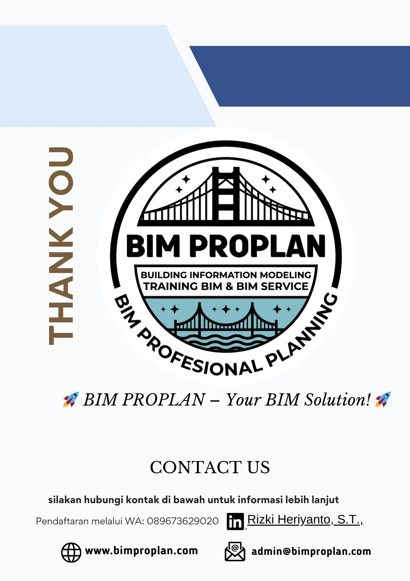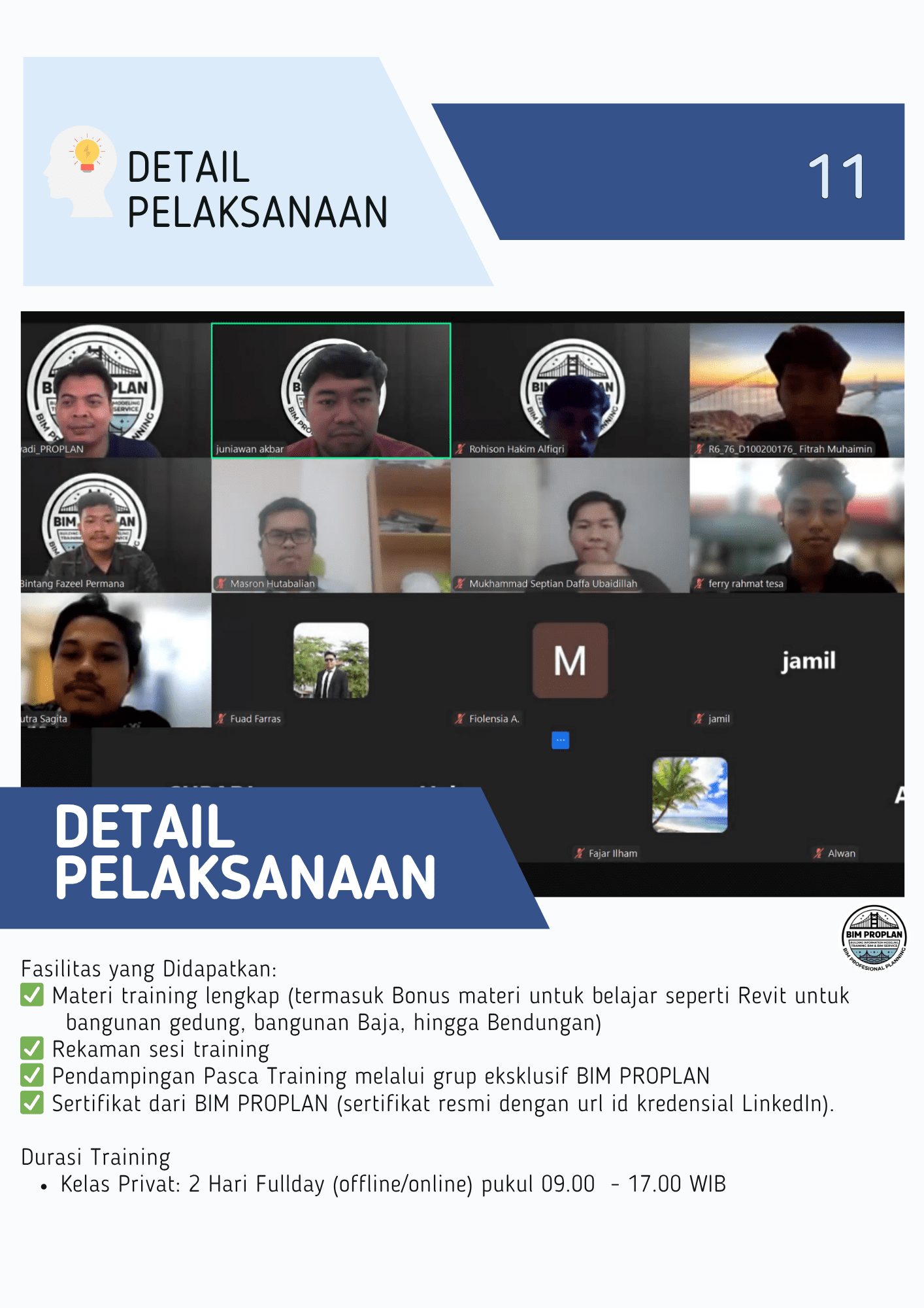 Silahkan hubungi wa 089673629020 – Rizki Heri (Founder BIM PROPLAN), untuk konsultasi terkait jadwal training Private